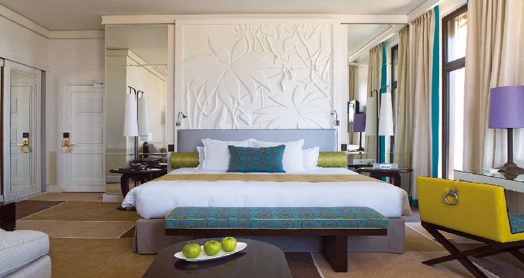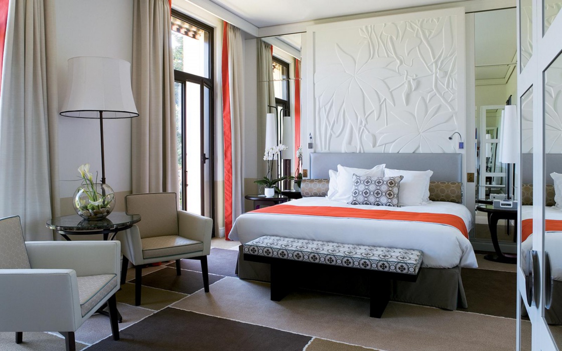 Bedroom Suite Sea & Garden view ( 1 комната 60м2 – терраса 22 м2, 2 комнаты 86 м2 – 2 террасы) со своей огромной террасой, которая полностью окружает Royal-Riviera, номер-сюит обладает грандиозными объемами и высокими потолками. Сюит располагает роскошной ванной комнатой из мрамора и может быть переоборудован в сюит из 2 комнат.