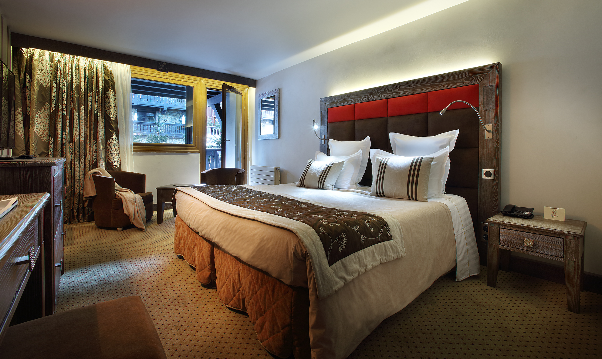 Prestige room valley/road/chalet side (30-33 кв. м): спальня с двуспальной кроватью или двумя отдельными кроватями, ванная комната. Возможно размещение дополнительной кровати. Вид на долину, шале или дорогу.