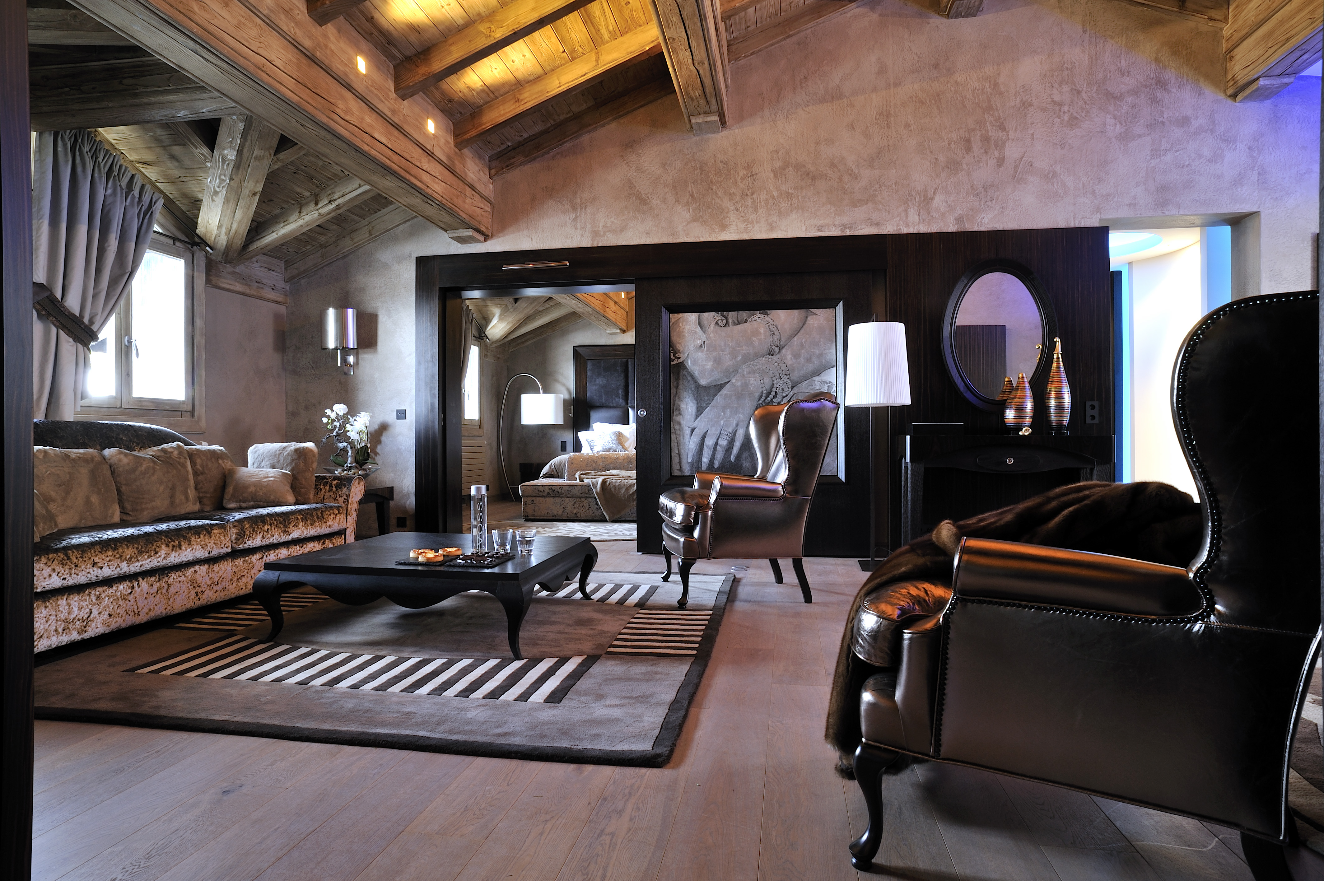 Superior suite contemporary (35-50 кв. м): спальня с кроватью “king-size” или двумя отдельными кроватями, ванная комната. Вид на склоны, долину, шале или дорогу. Возможно объединение с номером категории Standard room.