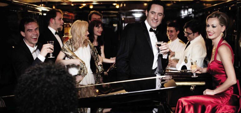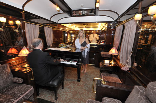 В центре поезда стильный вагон-бар располагает к себе приветливой атмосферой, в которой так приятно расслабиться за коктейлем или чашкой кофе. Это уютный уголок, где можно пообщаться со спутниками и послушать пианиста.