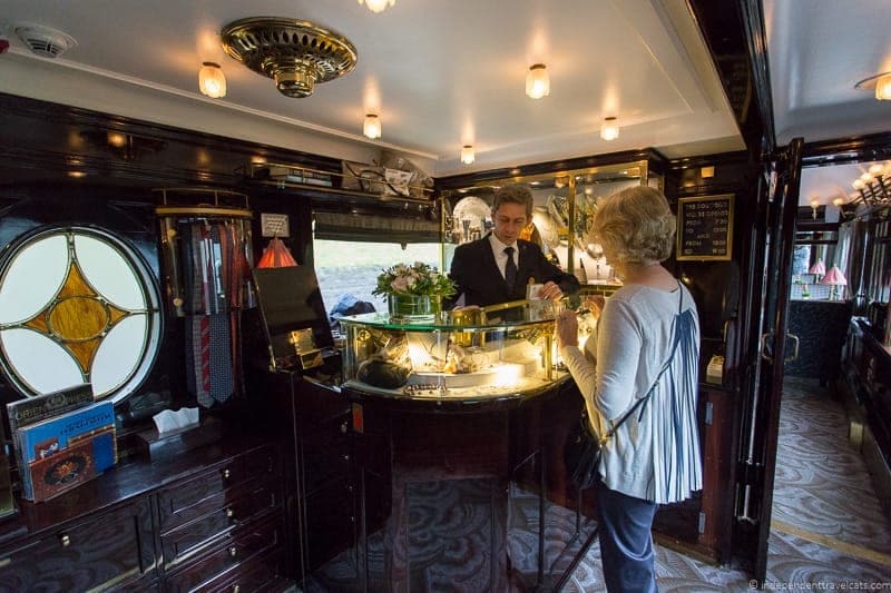 В поезде имеется три восстановленных вагона-ресторана 1920-х годов. Вагон Côte d’Azur, отделанный стеклянными панелями «Лалик», вагон Etoile du Nord с его неподражаемой инкрустацией, и вагон L’ Oriental, декорированный в черной лакировке.